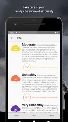 Thanks to the information view, check what each level of air quality means and whether it is safe for your and your loved ones' health.