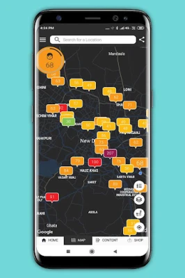 * AQI bubble is an interesting feature which user can drag it anywhere in the map the AQI will change immediately as per the AQI of that locations.