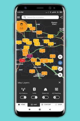 * See the different layers of the maps - stations, traffic, street AQI, and AQI Heatmap